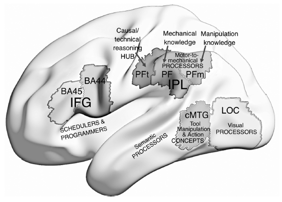 Parietal hub for goal-directed complex tool use